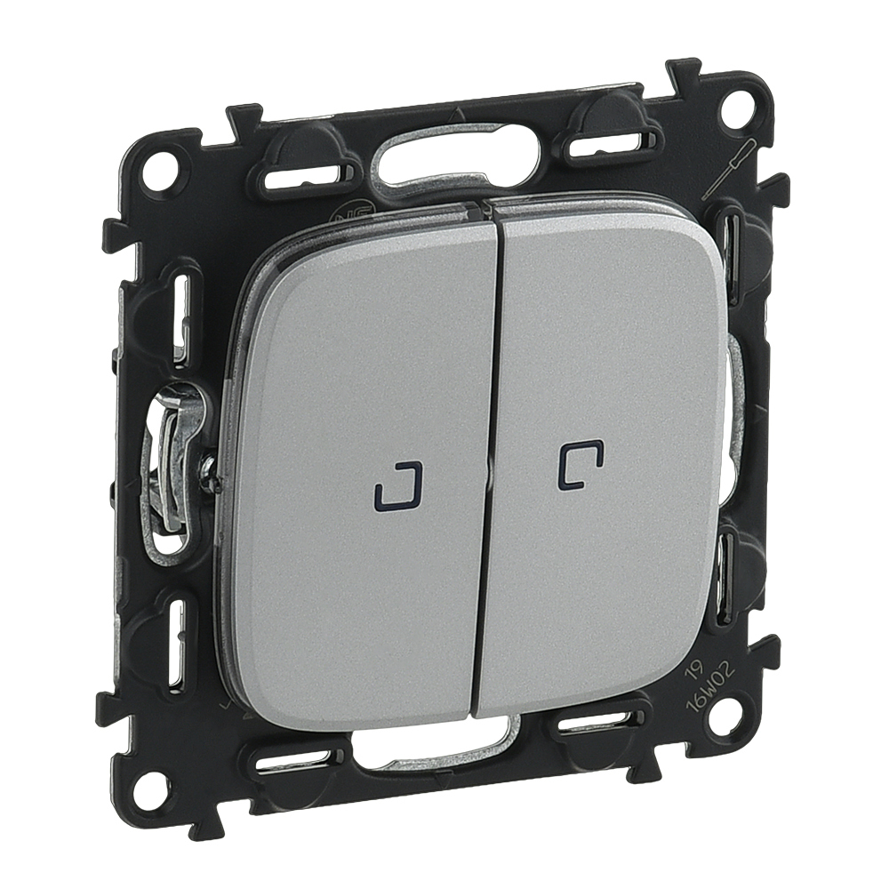 Переключатель Legrand 10АХ 250В 2-клавишный с подсветкой Алюминий, Valena ALLURE