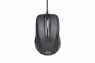 Компактна дротова миша з матовою поверхнею, прогумованою вставкою та симетричною формою корпусу.