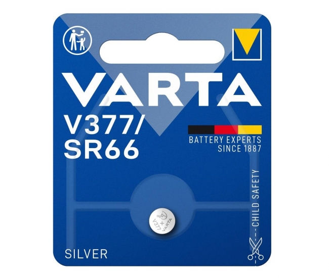 Головна - Споживчі товари і електроніка - Елементи живлення - Акумулятори, батарейки - VARTA - Батарейка срібло-цинкова V377 (AG4, LR626, SR626SW, 177) блістер, 1 шт.