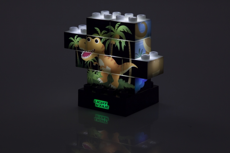 Набір кубиків «Puzzle Pack» з лінійки «Junior» із зображенням динозаврів дозволить дитині зібрати до чотирьох малюнків із безмежної кількості фігур. Цей комплект можна використовувати як самостійно, так і з конструктором LEGO® DUPLO®. Підсвічування забезпечує база, яка працює від трьох елементів живлення AAA або USB-підключення. Три режими підсвічування допоможуть зробити гру веселіше і прикрасити інтер'єр дитячої кімнати.