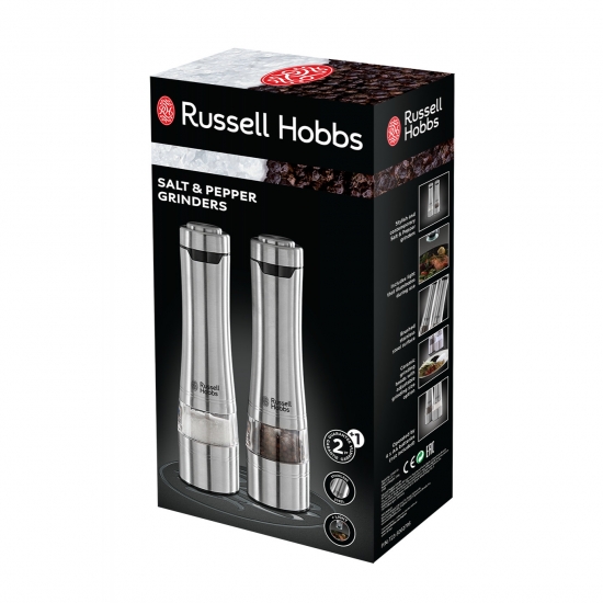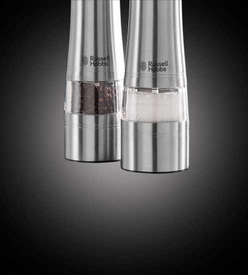 Млини для солі та перцю Russell Hobbs створені для точного контролю смаку страв завдяки використанню свіжомелених спецій. Розмір помелу можна налаштовувати відповідно до типу страви, що важливо як для рівномірного соління, так і для акцентного приправлення.