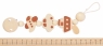 Розвиваюча кліпса для пустушки «Мандрівка» від німецького бренду Heimess вироблена виключно із натуральної деревини молочного кольору. З одного кінця кліпса чіпляється за одяг, а з іншого – петля вдягається на пустушку. Розмір петлі може регулюватись. Природні дерев’яні елементи у формі кульок, літака, машинки та корабля будуть приваблювати дитину. Ви можете не хвилюватись за безпеку дитини, оскільки деталі  оброблені дуже якісно. Кліпса для пустушки «Мандрівка» має і велику розвиваючу функцію. Завдяки такому аксесуару, дитина буде розвивати: зір, моторику рук, відчуття розмірів та матеріалів.