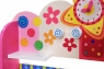 Якщо хлопчикам більше подобаються замки і машинки, то дівчинки будуть у захваті від іграшкової кухні з екологічно чистого дерева. Цей набір забарвлений в яскраві кольори і складається з семи основних деталей, а також різної іграшкового «кухонного начиння» - каструлі, сковороди, перечниці, ополоника, лопатки, а також годинника. Приємною дрібницею стала можливість відкрити внутрішню частину кухні та скласти туди всі комплектні аксесуари.