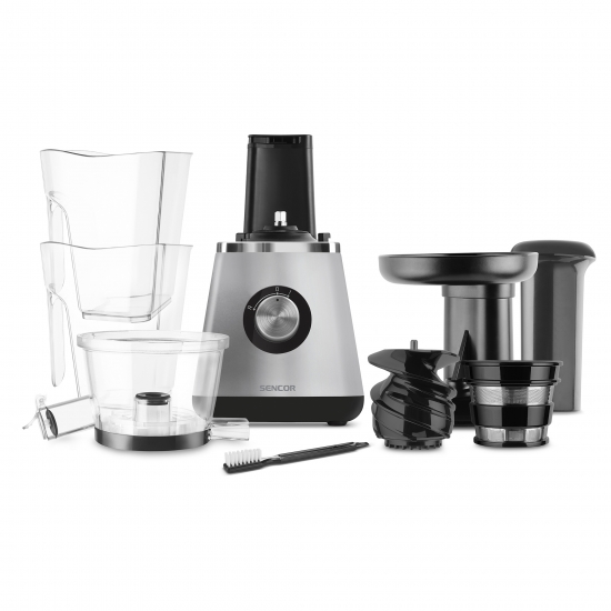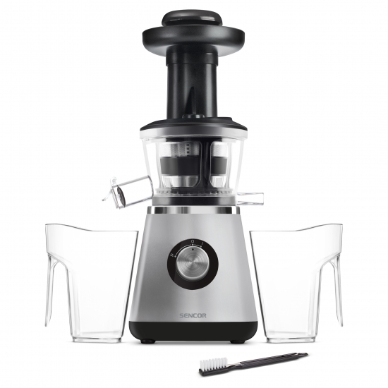 Тип соковижималки: шнекова; Потужність: 400 Вт; Об'єм резервуару для вичавки: 0.8 л; Ємність контейнера для соку: окремостояча; Швидкість обертання: 60 об/хв; Об'єм резервуара для соку: 0.8 л; Функції: Нековзкі ніжки, Повільна швидкість, Фільтруюче мікро-сито; Вага: 4.15 кг; Колір: нержавіюча сталь з чорним;