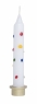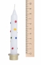 Жодне свято не обходиться без святкового торта зі свічками. Яскрава воскова свічка німецького виробника іграшок nic прикрасить будь-яке свято. Вона білого кольору із різнокольоровими цяточками, як справжнє конфетті. Висота свічки – 10 см, а діаметр – 14 мм, тому вона чудово підходитиме до металевих підсвічників німецького бренду. Прикрасу можна вставити у святковий торт або у спеціальні отвори вагонів дерев’яного потягу nic. Свічки nic під час горіння не димлять і не виділяють неприємного запаху.
