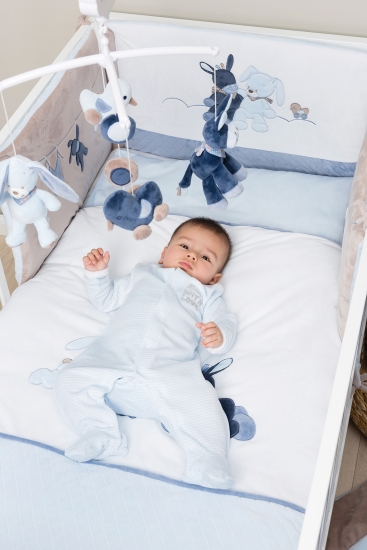 Мобіль бельгійського виробника іграшок Nattou – це водночас розвивальна іграшка для малюків і стильний аксесуар у дитячу кімнату. Виріб виготовлений із безпечних матеріалів: каркас і дуги з безпечного пластику білого кольору, а підвісні м’якенькі елементи – з поліестеру. Мобіль має звуковий супровід із приємною, негучною мелодією, підвісні елементи крутяться. Мобіль оснащений заводним механізмом і працює без батарейок. У зібраному вигляді виріб заввишки 78 см. Підходить для немовлят з народження. Виріб у фірмовій блакитній коробці розміром 37х30х8 см.