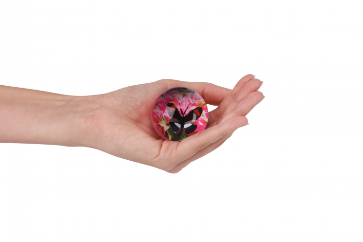 Активні ігри на вулиці надзвичайно корисні для дітлахів, тому німецький виробник іграшок goki створив серію різноманітних м’ячиків-стрибунців. Один з них – наполовину прозорий із квітами та метеликом всередині. Чорно-червоний метелик немов застиг у повітрі над рожевими квітами. М’ячик великий, його зручно тримати у руках, відрізняється чудовою стрибучістю. Іграшка допоможе покращити фізичний стан дітлахів, розвиватиме координацію рухів, спритність і спостережливість. Для дітей від 3-х років.