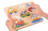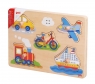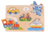 Автомобіль сигналить, літак видає звуки польоту, велосипед «дзвенить», потяг їде і дудить, корабель гудить – звуки дуже реалістичні! Кожний вкладиш має унікальну форму, для нього підходить лише один отвір на дошці.