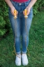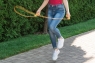 Тримаючи скакалку за ручки, перекиньте її вперед. Переступіть через неї, перекочуючись з носка на п’ятку.