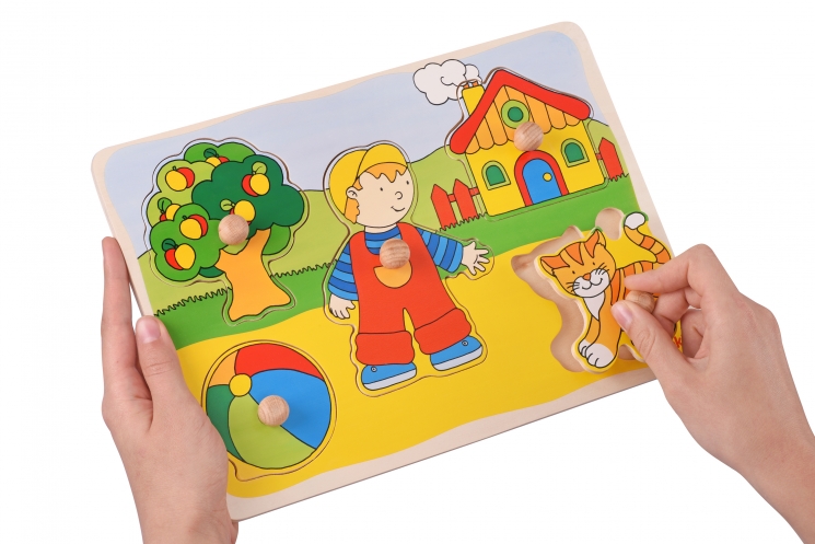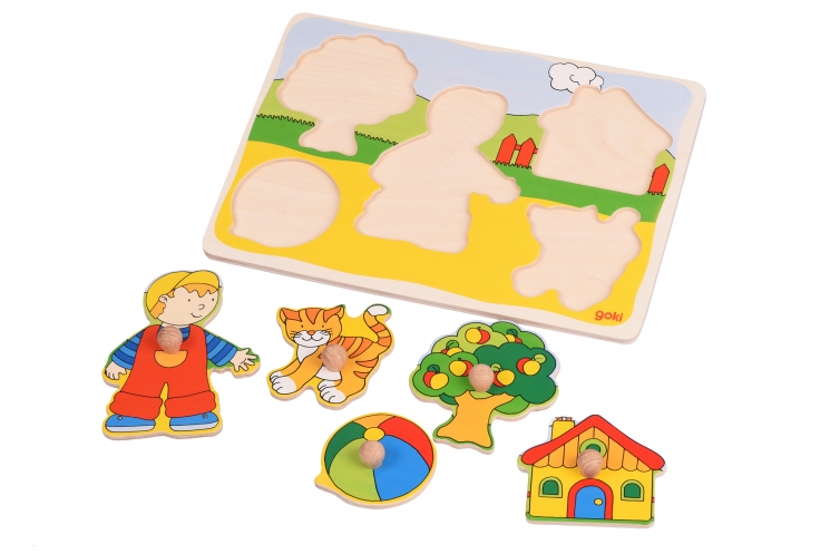 Дерев’яний пазл німецького виробника goki – захоплива, розвивальна іграшка. Пазл-вкладиш, складається з дошки основи і 5 вкладишів, які доповнюють зображення. Виріб виготовлений із натуральної деревини. Малюнок нанесений нетоксичними, безпечними фарбами. Розмір пазла – 30х21 см. Іграшка призначена для дітей від одного року.