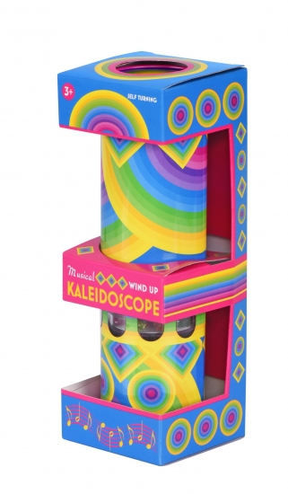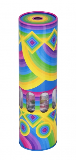 Великий калейдоскоп у формі циліндра, який вироблений із металу вкритого яскравими різнокольоровими фарбами. Знизу іграшка має заводний ключ, в центральній частині калейдоскоп оснащений прозорими віконцями із пластику, через які потрапляє світло.