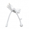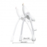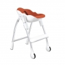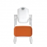 Білосніжно-оранжевий стілець виготовлений із міцного полікарбонату. Виріб оснащений ергономічними сидінням, нахил якого регулюється. Висота стільця також регулюється. Важливо, що виробник подбав насамперед про безпеку дитини – стілець оснащений ременями безпеки. Конструкція зручна та ергономічна не тільки для дитини, але й для дорослого. На передніх ніжках – колеса, що забезпечують зручне транспортування стільця.
