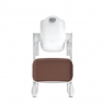 Білосніжно-мигдальний стілець оснащений зручним, ергономічними сидінням, нахил якого регулюється. Висота стільця також регулюється. Важливо, що виробник подбав насамперед про безпеку дитини – стілець оснащений ременями безпеки, відтак перебування дитини у стільці буде максимально комфортним. Конструкція зручна та ергономічна не тільки для дитини, але й для дорослого. На передніх ніжках – колеса, що забезпечують зручне транспортування стільця.