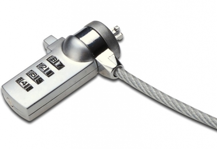 Зручне підключення до будь-якого ноутбука або настільного комп'ютера за допомогою вбудованого слота безпеки. Використовується обрана Вами комбінація цифр. Проста зміна комбінацій цифр. Міцність на розрив 1400 кг. Підходить для використання в офісних приміщеннях, а також в громадських установах, як, наприклад, виставки (експозиції), інтернет-кафе і т.д.