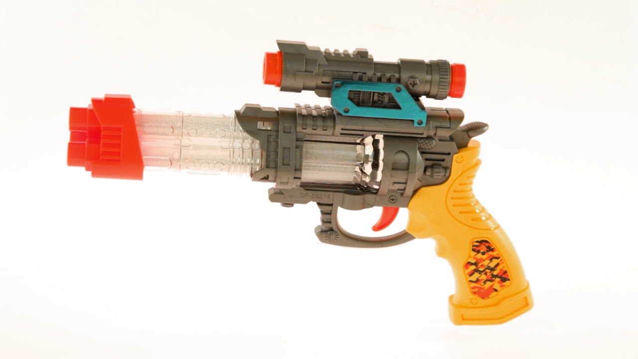 Тип: бластер; Вікова група: від 3-х років; Механізм дії: механічне; Елементи живлення: AA x 3 шт.; Матеріал: пластик.