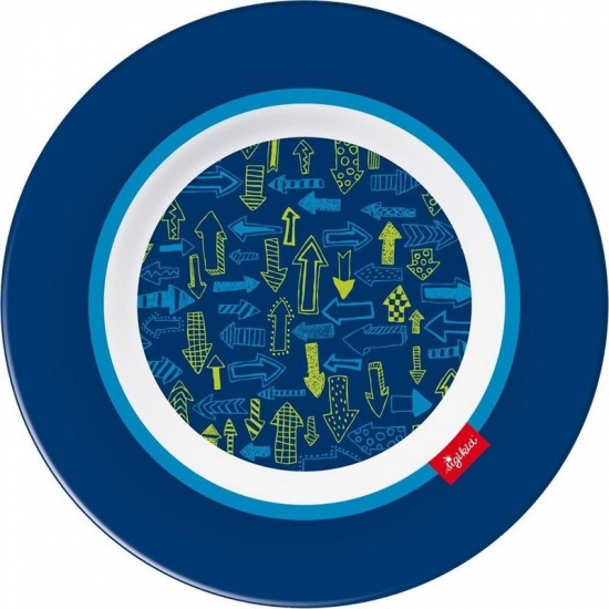 Дитяча пласка тарілка «Arrows» від німецького бренду sigikid. Тарілка (Ø=21,5 см) із яскравим графічним малюнком вироблена із якісного пластику. Матеріал надзвичайно практичний. Тарілку можна мити у посудомийній машині, матеріал відрізняється зносостійкістю і не ламається. Яскраві малюнки приваблюватимуть дітлахів. У колекції «Arrows» ще є: склянка, глибока тарілочка, ланчбокс, пляшечка для води, рюкзак та футляр для окулярів – усіх їх об’єднує яскравий графічний малюнок синьо-салатового кольору.