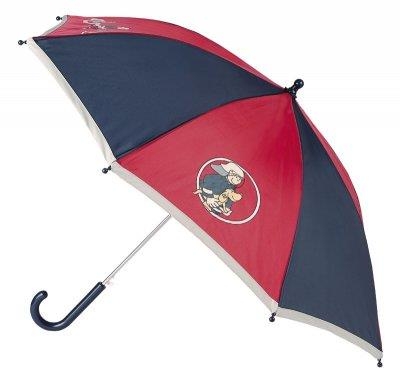 Парасолька-тростина від німецького бренду sigikid для сміливих хлопчиків. Яскравий та практичний аксесуар синьо-червоного кольору із зображенням пожежника, що гасить вогонь, його песика помічника та пожежної машини. Механізм - напівавтомат. Кольоровий купол розкривається одним натисканням кнопки. Він вироблений із поліестеру, пластикові елементи – із поліпропілену, а спиці – металеві. Спиці під куполом захищені прозорими пластиковими чохольчиками, а на кінцях – пластиковими наконечниками, тому парасолька абсолютно безпечна для дітей і оточуючих.