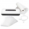 З вакуумним пакувальником Ви легко збережете продукти харчування свіжими і якісними. Збільшення терміну зберігання до п'яти разів. Вакуумна упаковка продуктів дозволяє повністю зберегти харчову цінність і оригінальний аромат свіжих продуктів. Запобігає висушуванню / втраті вологи в продуктах. Дуже проста і інтуїтивна робота. Кожна програма активується натисненням однієї кнопки. Можна тільки створювати вакуум. Нековзаючі ніжки надійно утримують прилад на місці для безпечної роботи. Можливість під'єднання трубки для відкачування повітря з вакуумних ємностей, контейнерів, пляшок і т.д. Трубка входить в комплект упаковки. Основний комплект професійних вакуумних плівок входить в комплект упаковки. Продукти в упаковці можна нагрівати і розморожувати. Сумісний з різними видами плівок.