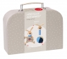 Дуже красивий подарунковий набір брязкалець для немовлят. Це ідеальний подарунок на хрещення немовляти, або просто для сім’ї, у якій щойно з’явився новонароджений малюк. Набір містить 3 іграшки – м’якенька кулька, брязкальце і комфортер. Вони виготовлені в одній стилістиці, із зображенням милої овечки. Іграшки запаковані у красиву, вишукану валізку з ручкою. Розмір скриньки 20х16х7 см. Всередині валізки красивий крафтовий папір. Набір брязкалець sigikid для дітей від народження.