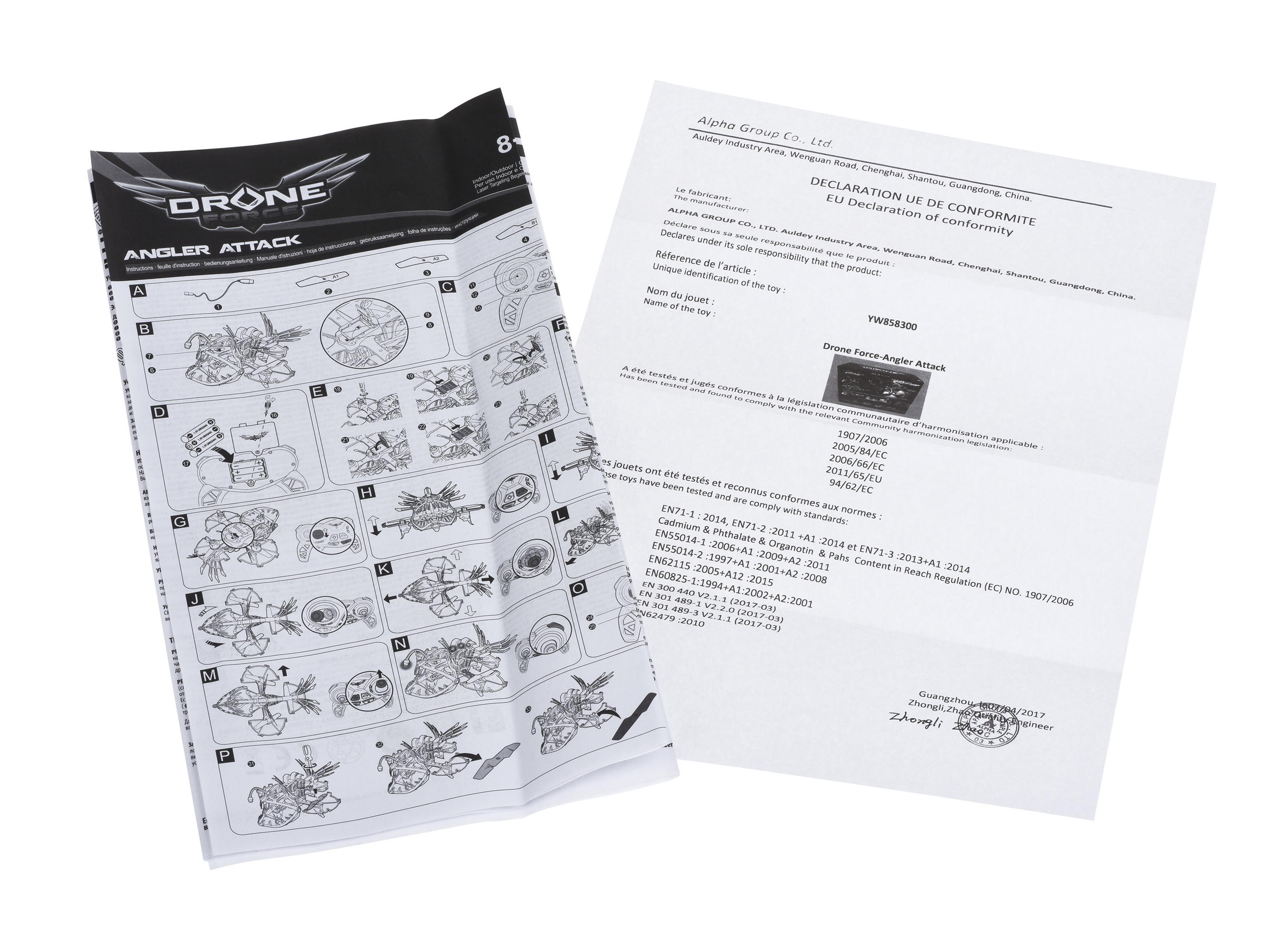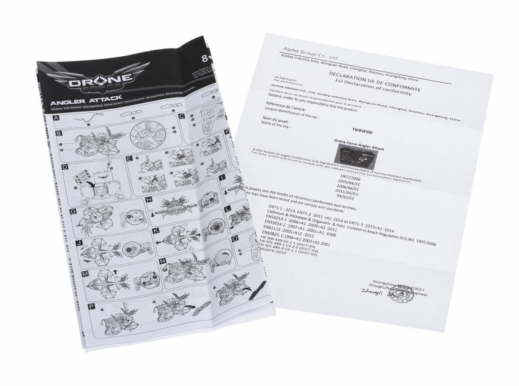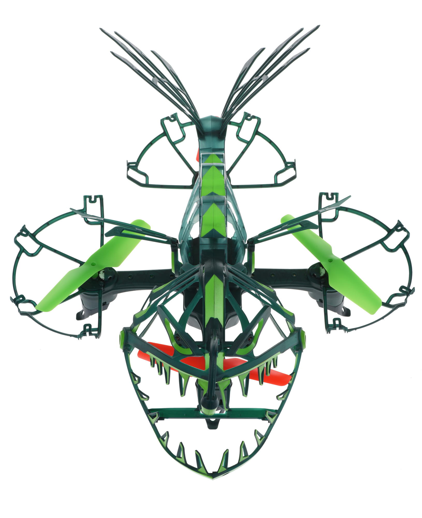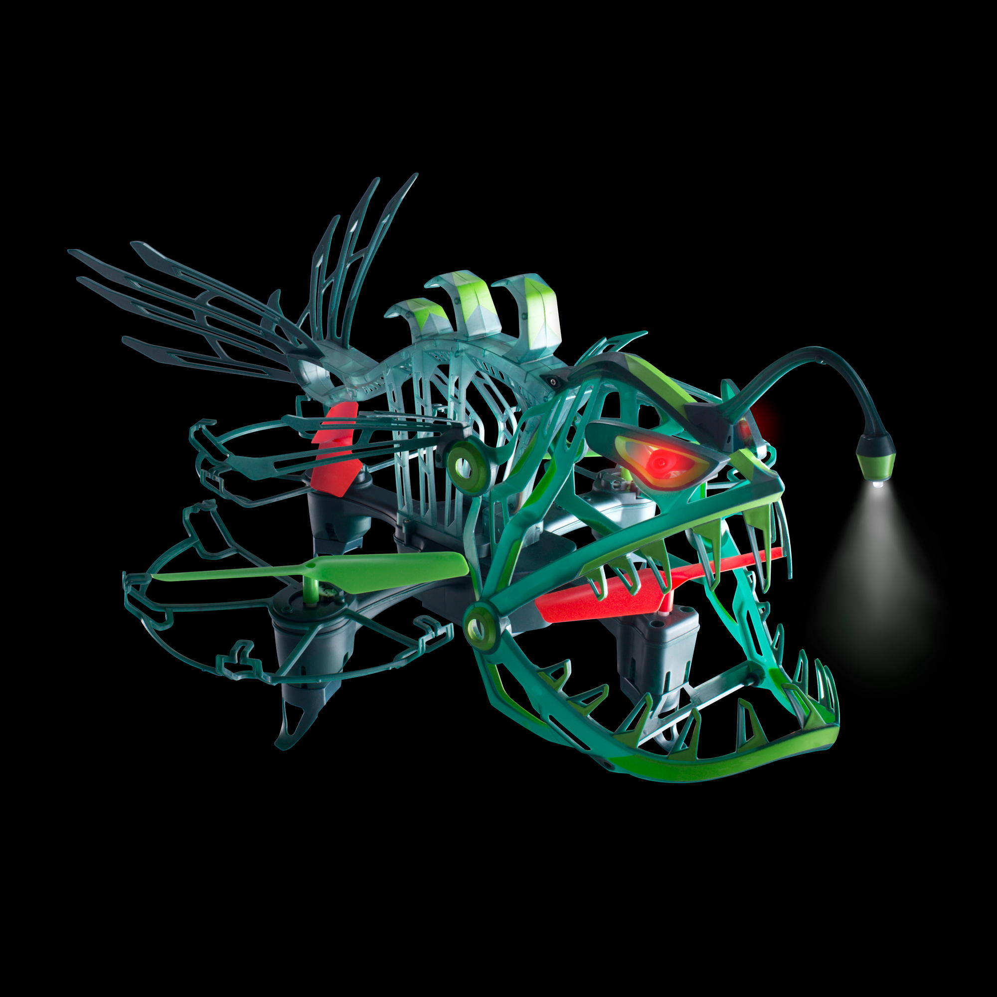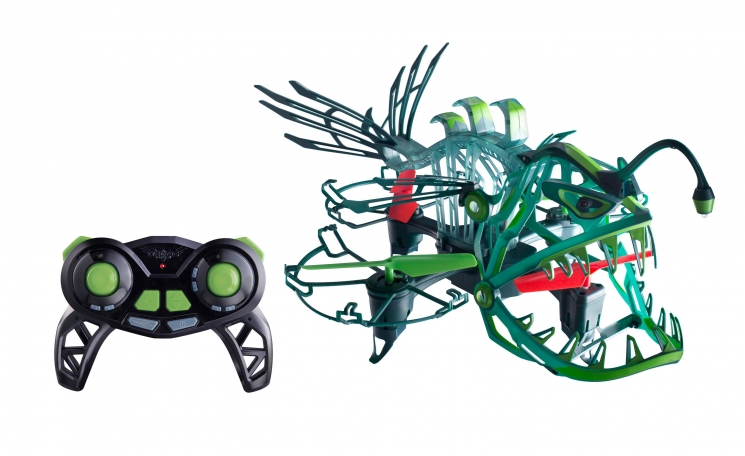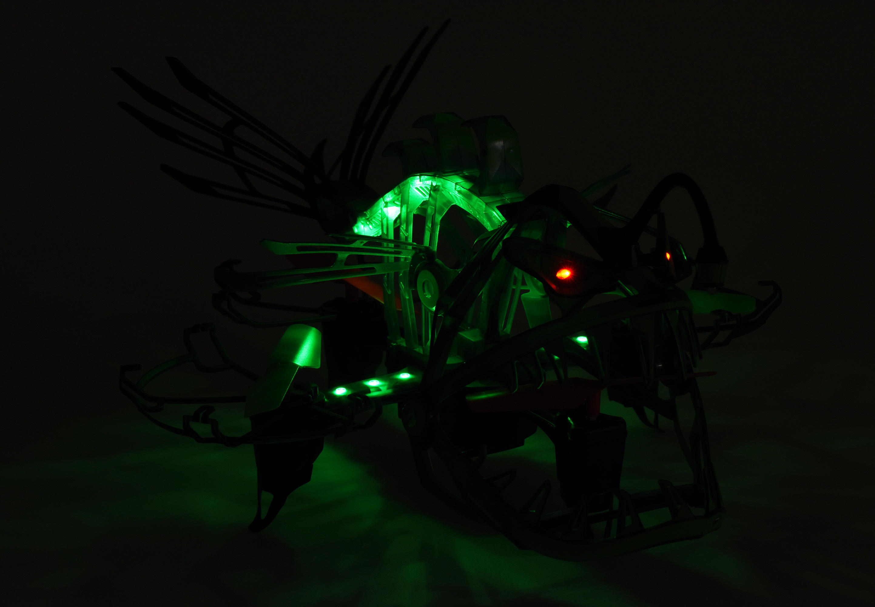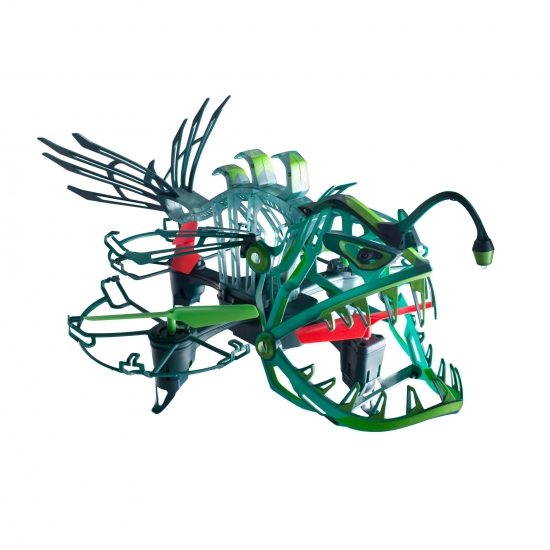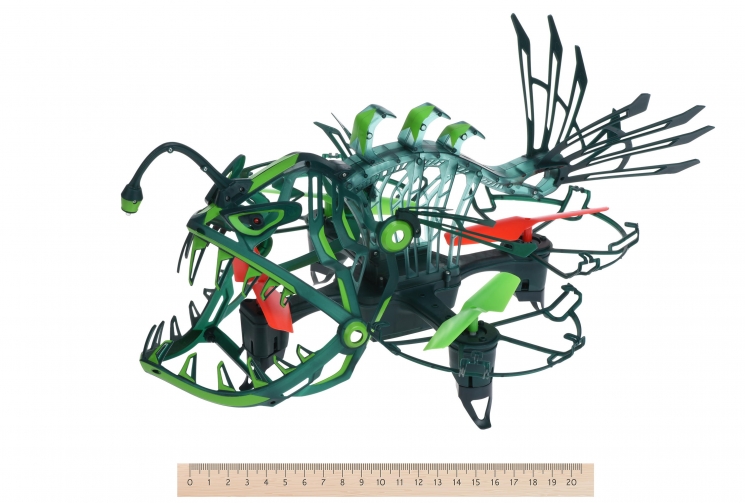 Безпілотник вироблений із легкого та гнучкого пластику. Максимальна дальність польоту – 45 м. Очі світяться червоними вогнями, а хвіст та окремі елементи – зеленим. Пластик люмінесцентний, світиться у темряві.