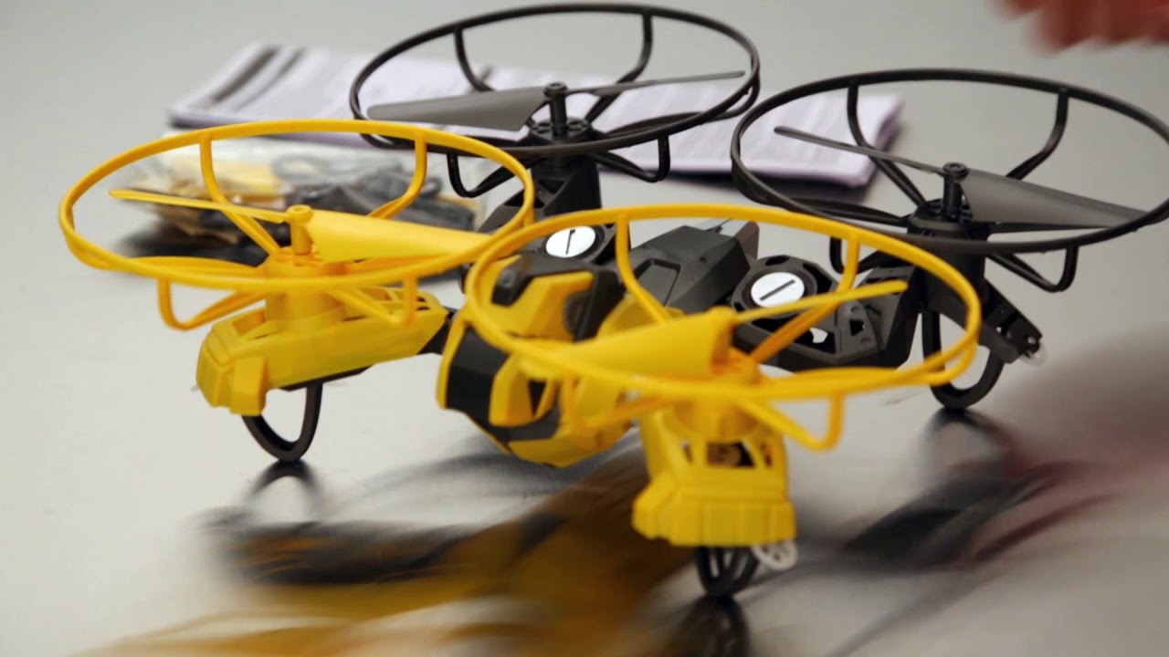 Дрон має функцію авто-зльоту та авто-приземлення. Максимальна дальність польоту – 45 м. Одне натискання кнопки – і літаючий дрон швидко трансформується у наземну модель, пересуваючись на маленьких колесах.