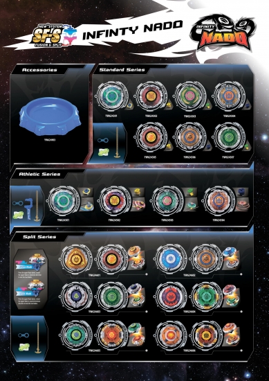 Потужна дзиґа легендарної серії Стандарт турнірних бійців Infinity Nado, інноваційний дизайн та комплектація з пристроєм запуску у комплекті. Може бути переобладнана додатковими аксесуарами, аби перетворитись на інший тип. З металевим кільцем. Здатна перемагати бійців відмінної від Nado армії дзиґ.