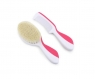 Безпечний набір для догляду за волоссям дитини від італійського бренду Nuvita. У комплект входить гребінець і м’яка щітка – ідеальний набір для делікатної шкіри голови та тоненького волосся. Матеріал щетинок – натуральна вовна, зубчики гребінця – заокруглені. Набір виконаний із міцної пластмаси у біло-рожевих кольорах, ручки ергономічні. Для догляду за дітьми з народження.