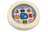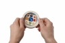 Діаметр дерев’яної основи 8 см, товщина 1,5 см. Вироблена із натурального дерева. Її дуже зручно, а головне безпечно тримати у руках. Зверху гра захищена прозорим пластиковим «віконцем», тому можете не хвилюватись, що кульки можуть загубитись. Фарби, якими нанесений малюнок, на водній основі, нетоксичні і привабливі.