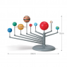 Конструкція складається з пластикової підставки, кронштейна та поворотних кріплень для планет. Металеві стрижні формують просторову структуру системи. Тривимірні моделі планет і Сонця розфарбовуються вручну фарбами з набору. Картонні кільця Сатурна доповнюють модель наочними деталями. Поворотні кріплення дають змогу розмістити планети навколо Сонця. Наждачний папір використовується для підготовки поверхонь перед фарбуванням. Детальна інструкція пояснює послідовність складання. Процес роботи сприяє розвитку моторики та уважності. Модель зберігає стабільність після завершення складання.