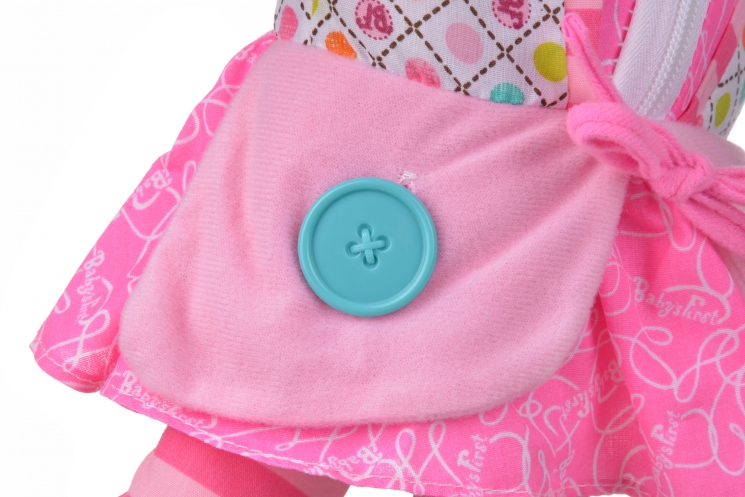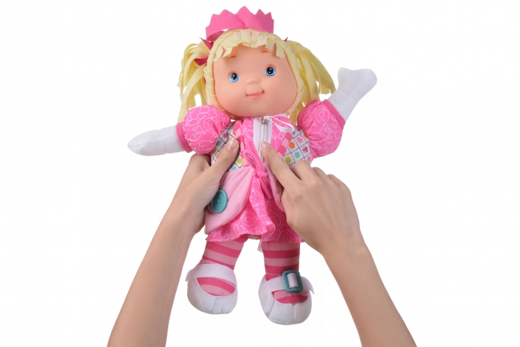 У принцеси “Zip-ity” є багато талантів: вона навчить дитину застібати ґудзики та блискавки на одязі, зав’язувати вузли, бантики, а також застібати пряжки та липучки. Та це ще не все – просте натискання і лялька ще й заспіває пісеньку про свої уміння на українській і англійській мовах. Ляльки Baby’s First допомагають у розвитку, вчать правильним манерам, турботі про інших, прищеплюють навички гри, навчання, правильного сну. Zip-ity – чудова лялька, яка стане улюбленою іграшкою і подарує вам любов, тепло та затишок. Висота ляльки 38 см.