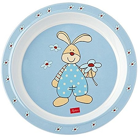 Дитяча пласка тарілка «Semmel Bunny» від німецького бренду sigikid. Тарілка (Ø=21,5 см) із малюнком милих ведмежат вироблена із якісного пластику. Її можна мити у посудомийній машині, матеріал відрізняється зносостійкістю і не ламається. Яскраві малюнки приваблюватимуть дітлахів. У колекції «Semmel Bunny» ще є: глибока тарілка, чашка, столові прилади, м’яка та музична іграшка – усіх їх об’єднує світло-блакитна колірна гама та герой серії – усміхнений кролик.