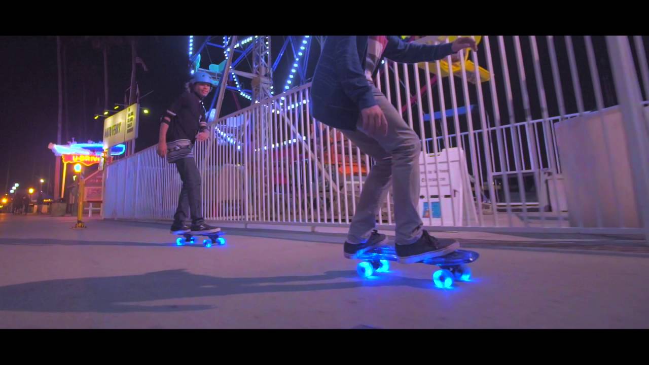 Neon Cruzer - це унікальний скейтборд з підсвіткою. Просто ставайте на дошку і під час руху колеса підсвічуватимуться. Для цього не потрібно жодних батарейок. Якщо зупинитись - колеса перестануть світитись. Скейт має міцну конструкцію і якісні колеса. Платформа напівпрозора, виглядає дуже стильно і модно. Дошка нековзка і має спеціальне гумове покриття. Скейтборд Neon Cruzer із прозорою платформою і яскравими світлодіодними колесами ідеально підходить для їзди по асфальту, катанню по околицях. Витримає навантаження до 70 кг. Рекомендований вік: 5+.