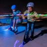 Хто буде найбільш помітним цього літа на майданчику? Звісно, власник самоката з LED-підсвіткою. Транспортний засіб адаптований для дітей віком від 5 років; максимальне навантаження – 50 кг. Конструкція у самоката суцільна, а самокат легко розкладається. Металева рама міцна, надійна, витримує активне катання і при цьому не люфтить. Особливість цієї моделі – компактність. Невеликий, легкий самокат легко транспортувати, а вдома він не займе багато місця. Розмір самоката: 69х79х36 см (ДхВхШ). Максимальна висота керма – 79 см. Ширина платформи – 12 см. Самокат Neon Vector із яскравим колесами, що світяться під час руху.