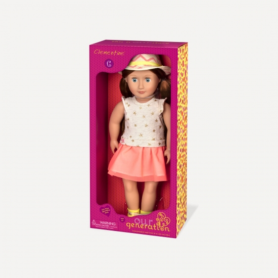 Клементина – це уособлення спокійності, гарних манер та елегантності, вона є однією з фантастичних ляльок Our Generation. Її рожева спідничка чудово гармонує з милим рум’янцем на щічках, а блуза та капелюшок роблять образ ляльки легким та ніжним. Лялька чудово підходить для прогулянок містом або пікніку біля річки. Вона весела та кумедна. Її руде волосся, яке відмінно гармонує з блакитними очима, не залишить малечу байдужим. Лялечка виготовлена з вінілу та має м’яке наповнення. Висота ляльки 46 см. Рекомендований вік : 3+.