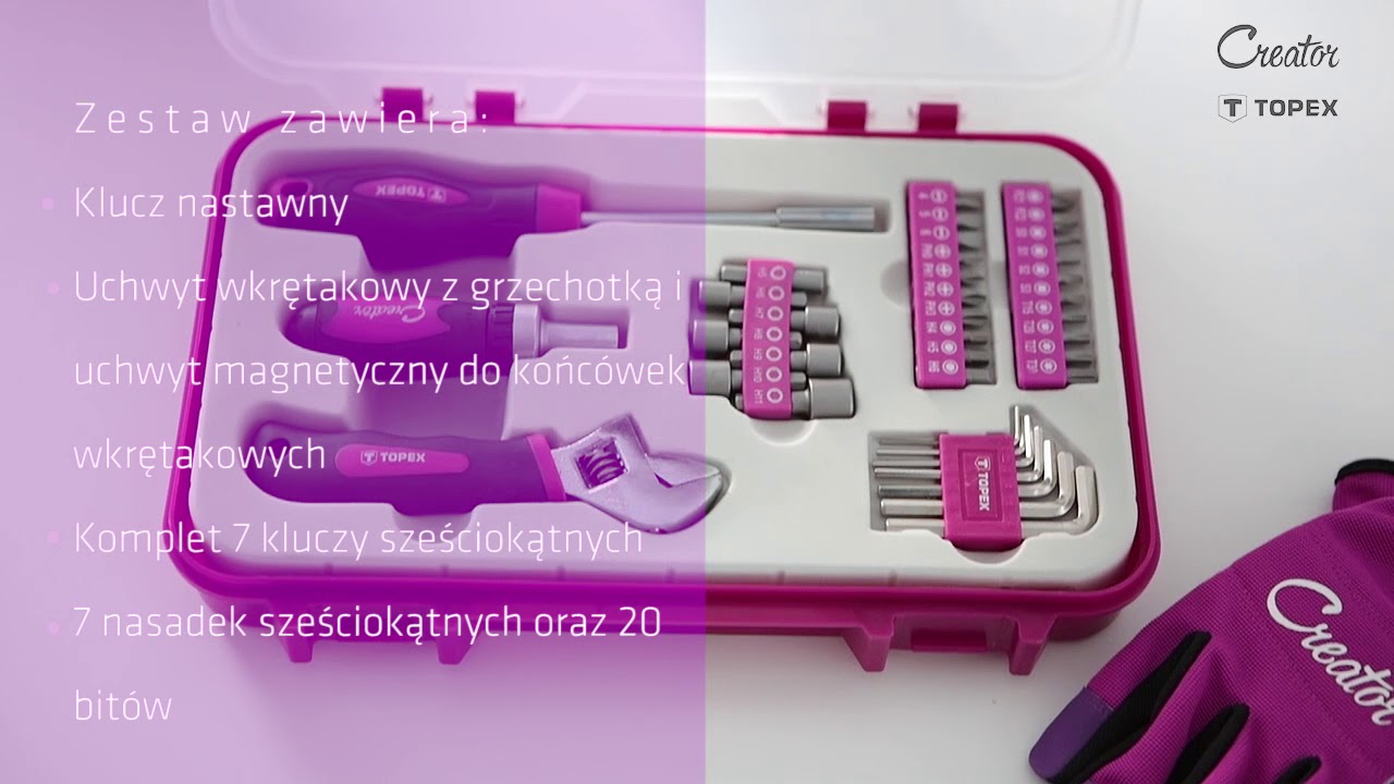 Набір викруткових наконечників і насадок TOPEX складається з 26 елементів, упорядкованих у текстильному футлярі. Всі елементи виготовлені з високоякісної хромванадієвої сталі, що забезпечує подовжений термін експлуатації продукту. До комплекту входять викруткові насадки, викруткові наконечники та викруткове руків’я з ергономічною пластиковою ручкою, вкритою протиковзним матеріалом, що забезпечує комфорт експлуатації. Набір широко застосовується у дрібних монтажних роботах, ремонті автотранспортних засобів і обладнання, а також інших роботах вдома та в гаражі кожного майстра. Марка TOPEX адресована майстрам, які займаються дрібним ремонтом.