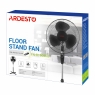 Діаметр лопатей досягає 40 см, а для безпеки використовується посилена конструкція захисної решітки. Стійку установку забезпечує хрестовина з розміром 52 см. У конструкції вентилятора передбачено регулювання нахилу в межах 90 градусів, а також регулювання по висоті – від 110 см до 125 см.