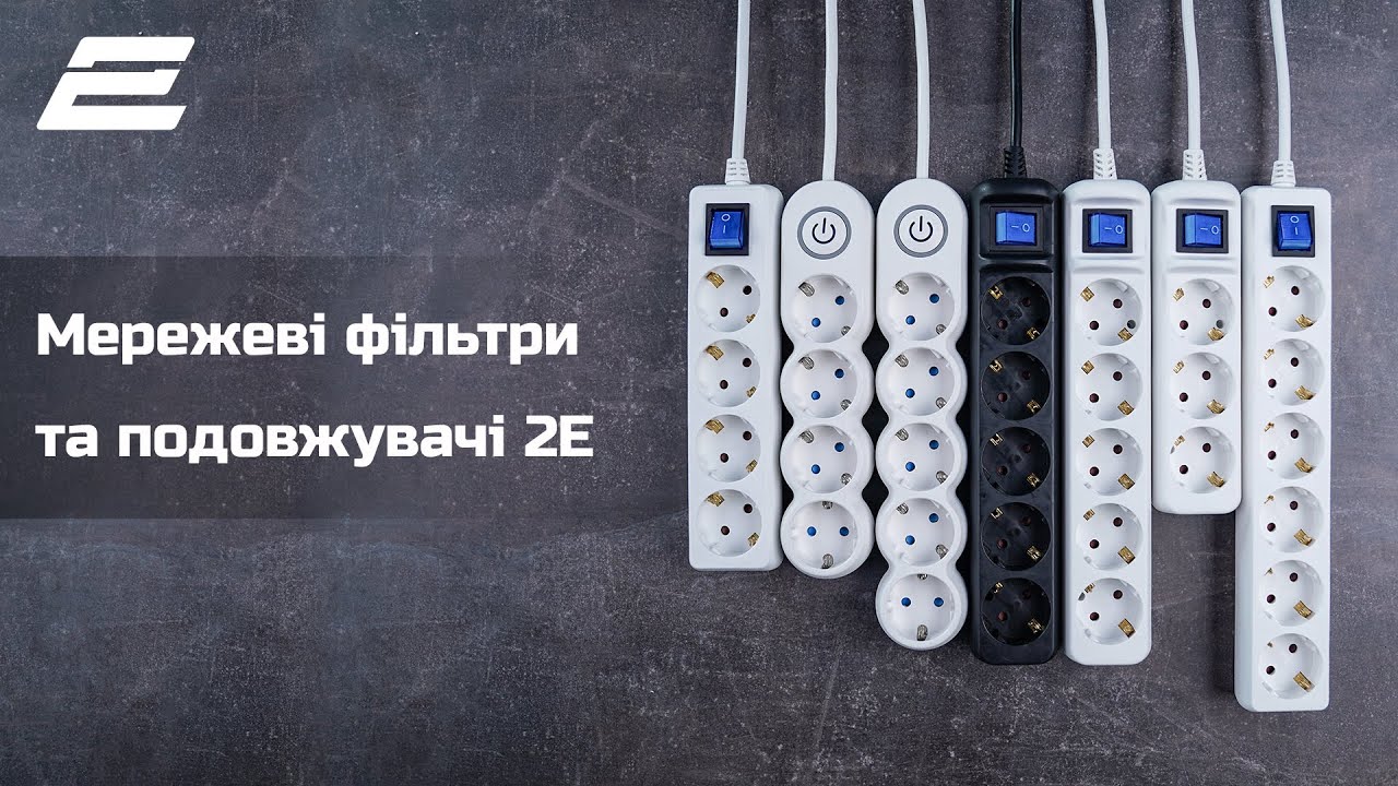 Головна - Продукція та рішення для підприємств - Електротовари та світло - Мережеві фільтри - 2E - Мережевий подовжувач 5XSchuko з вимикачем, 3G*1.5мм2, 3м, white