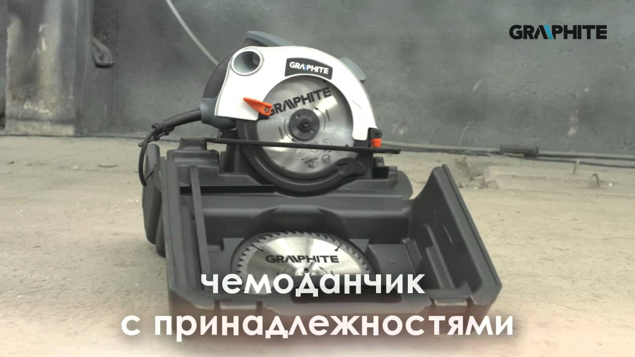 Дискова пилка GRAPHITE з двигуном 1200 Вт, що дозволяє досягти швидкості леза до 5000 об / хв. Пилка дозволяє різати під кутом від 0 ° до 45 °. Максимальна товщина матеріалу для прямокутного різання - до 65 мм, а для різання скосом - до 43 мм. Кут різання та регулювання глибини без інструментів - передбачена спеціальна шкала для легшого налаштування параметрів різання. Оснащені пилкою ручки із замком від випадкового запуску, покриті протиковзким матеріалом, що робить роботу зручною та безпечною. Пила працює з ріжучими лезами зовнішнього діаметра 185 мм та діаметром отвору 20 мм. Швидка заміна леза можлива завдяки сталевій кнопці блокування шпинделя. Верхня і нижня захисні частини леза виконані з алюмінієвого сплаву. Користувач може замінити зношені вуглецеві щітки при необхідності. Пила поставляється з ріжучим лезом і футляром. Відповідність європейським стандартам підтверджується сертифікатом CE.