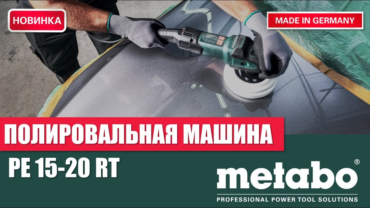 Полировальная машина Metabo PE 15-20 RT. 1500Вт. VTC электроника постоянства 300 - 1900 об/мин. 18 Нм. 80 dB(a) работа без наушников. диаметр диаметр полир тарелки до 200 мм. М14. 2.4 кг