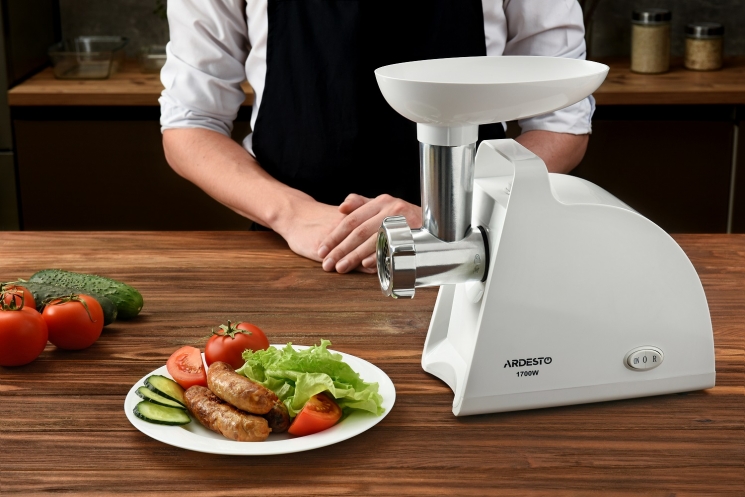 Головна - Побутова техніка, інструменти та товари для дому - Техніка для кухні - Для підготовки продуктів - М'ясорубки - ARDESTO - М'ясорубка, 1700Вт, продук.-1.6кг/хв, 2 решітки + для ковб., кеббе, пластик, білий