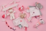 М’якеньке і миле брязкальце у рожевих кольорах – ведмедик Валентина. Головна особливість брязкальця Nattou в тому, що воно виконане з безпечного і м’якого поліестеру, а всі пластикові частини видають приємні звуки при шарудінні. Всі вони заховані всередині, а тому іграшка абсолютно безпечна для малюків з самого народження. Розмір 17 см.