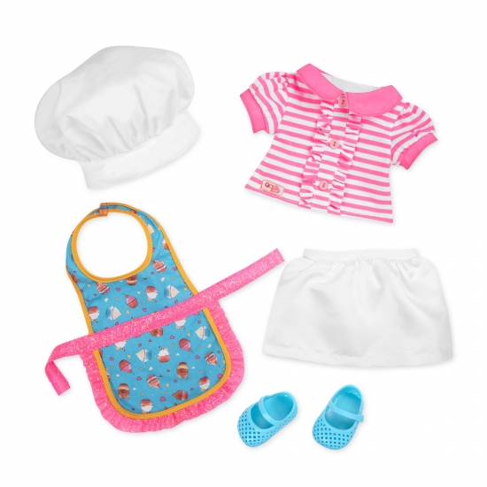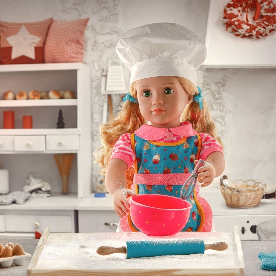 Лялька Jenny Our Generation з колекції Deluxe Dolls готова зробити смачні десерти! Вона любить пекти, тому в наборі є багато різних аксесуарів для випічки. Ви можете прочитати про її пригоди в пекарні Sweet Shoppe (книгу англійською мовою) і навчитися готувати. Гра з лялькою допоможе розвинути фантазію і рольову гру, надати естетичний смак.