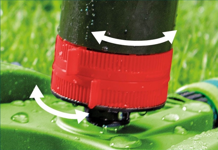 Шести секторний зрошувач з приводом, який дозволяє ефективно поливати навіть при більш низькому тиску води. Стабільна основа і регульований діапазон і кут нахилу потоку забезпечують рівномірне зволоження. Завдяки приводу максимальна площа поливу складає 350 м2. 6 різних режимів поливу дозволяють вибрати оптимальний тип струї для надання форми зрошуваною поверхні.