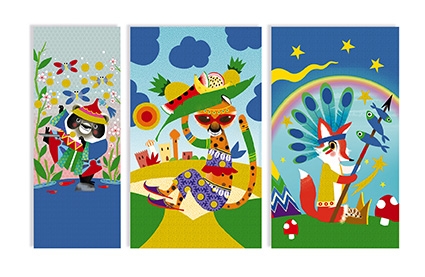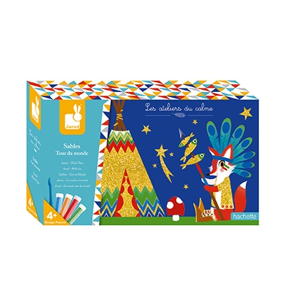 Художній набір Навколо світу від французького бренду JANOD містить 3 дошки-зображення з самоклеючим покриттям, з тваринами в типових для регіону нарядах. Ці ілюстрації можна посипати піском в тюбиках, в 4 кольорах: жовтий, зелений, червоний і синій. Пісок прилипає до малюнків, залишаючи на них дрібнозернисту структуру. У комплект входить шпатель для прикраси поверхонь. Наклеювання забезпечить дитину довгими годинами захоплюючої і в той же час заспокійливої забави, а закінчені малюнки стануть відмінним декоративним елементом дитячої кімнати.
