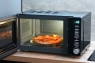 Мікрохвильова піч чорного кольору з дзеркальними дверцятами, електронним управлінням та дисплеєм. Потужність GO-E845GB – 800 Вт, є п’ять рівнів регулювання, а внутрішній обсяг дорівнює 20 л.