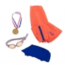 Домашні улюбленці звикли всюди супроводжувати своїх господарів, навіть під час занять спортом. Тож, для прогулянки в басейн песику також потрібно виглядати стильно та відповідно до ситуації. В набір аксесуарів для іграшкового песика входять чотири предмети: шорти та окуляри для плавання, рушник, нагорода. За допомогою даного набору малюк зможе перетворити іграшкового песика на справжнього героя спортивної олімпіади. А також розвинути сюжетно-рольову гру та фантазію.