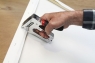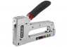 Степлер меблевий, багатофункціональний, 4 в 1, скоби 6-14 мм, для скоб типу J, G, L, E, корпус з алюмінію, профільована ручка, покрита пластиком, регульоване зусилля притиску скоб, простий вибір типу скоб за допомогою слайдера, затискач для кріплення на пояс, замок безпеки