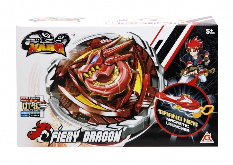 Вогняний Дракон - це атакуюча дзиґа, має відмінні показники атаки завдяки зубчастому атакуючому кільцю і характерному основи. Характерною відмінністю наборів є інноваційний пристрій запуску, яке притягує дзиґу за допомогою магніту, а досягти неймовірного прискорення дозволяє мотузкова система запуску вовчка. Відтепер Ваш запуск буде завжди потужним і непереможним.