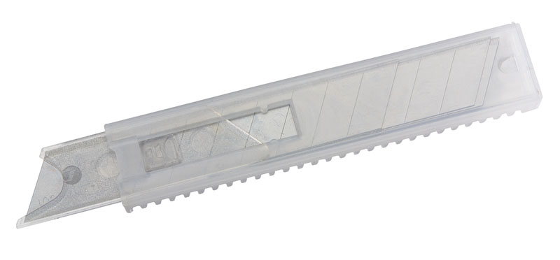 езо шириною 18 мм з 7-ма сегментами, що відламуються. Товщина леза 0,55 мм. Диспенсер з пристосуванням для обламування використаних сегментів лез і їх зберігання. 3-11-301: 50 шт.