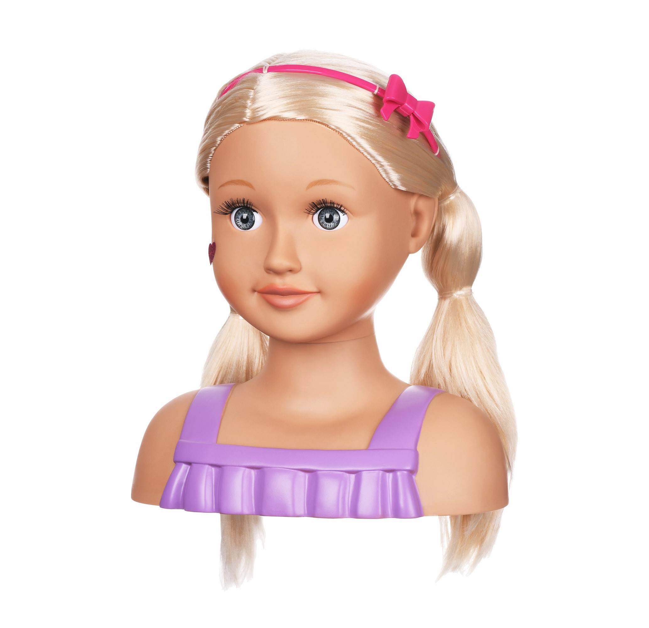 Комплектація: 12 предметів (1 лялька-манекен, 1 блискуча зоряна наклейка, 1 затиск для банта з блискітками, 1 пластикова пов'язка на голову з бантом, 1 гребінець, 1 затиск в формі серця, 1 розпилювач, 1 шпилька для боббі у вигляді серця з бульбашками, 1 перлинна шпилька для волосся, 1 баночка гелю з блискітками, 1 лист з наклейками з дорогоцінними каменями, 1 блискучий стікер).